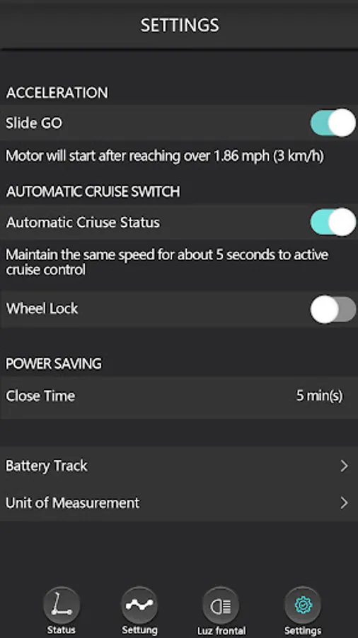 super escooter app is an app for the s1-a devices to easily control the scooter and setting the params of s1-a scooters