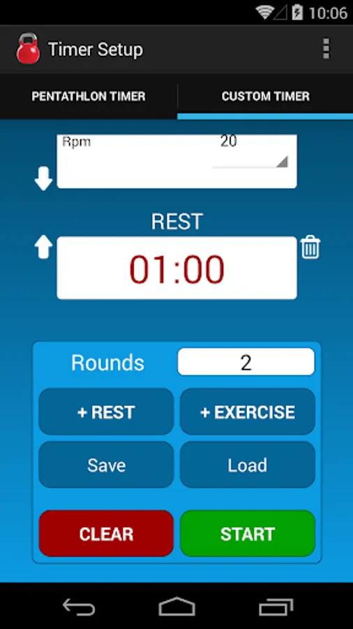 Through in-app purchase you may unlock the Custom Timer. This is a great way to set up your own programs. Use is for Kettlebell Sport, Tabatas, Interval Training etc.
