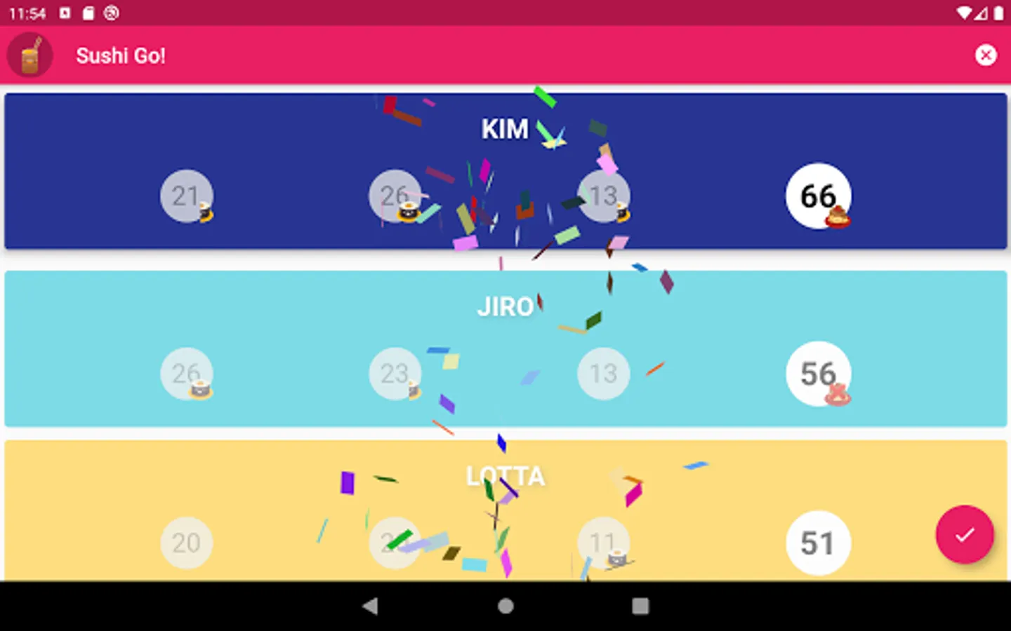 Add players, and just start the game. The app will keep track of all your sushi and delicious puddings.