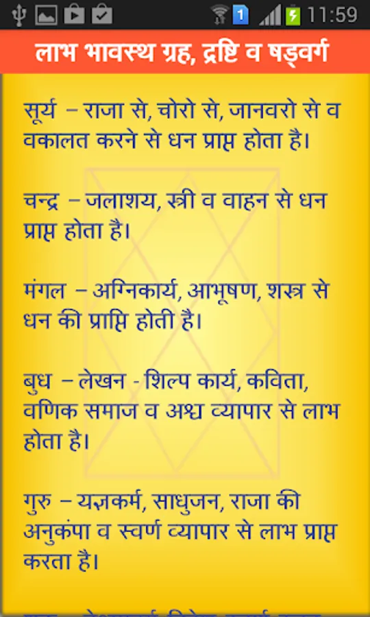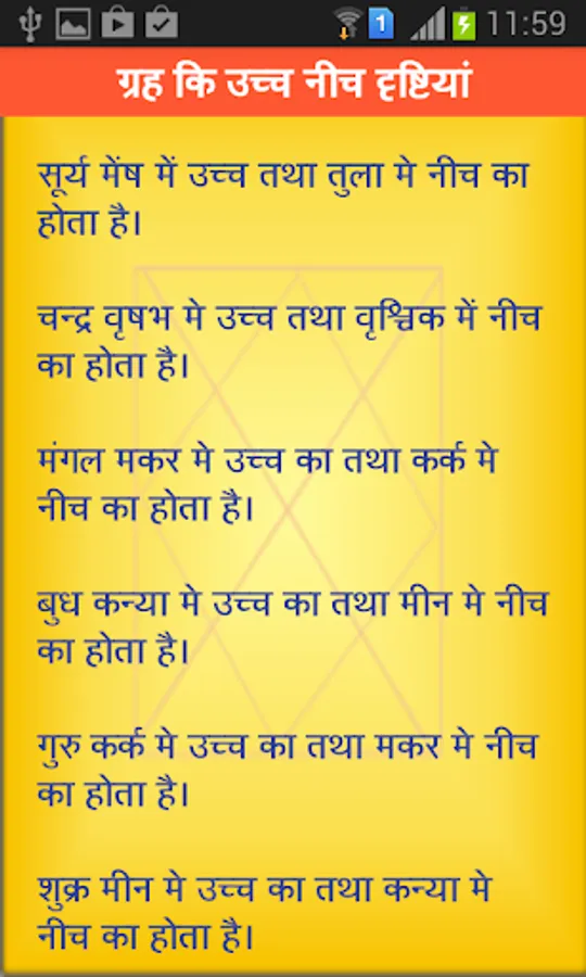 By using this app you can learn the effect of planets (Grah) at different position and what are the impact if meet or seen to other Planets (Grah).