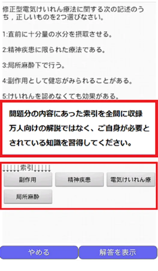 当アプリでは、全問に索引検索機能を設けておりますので、ご自分にあった解説をインターネットからご確認ください。