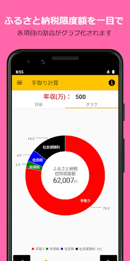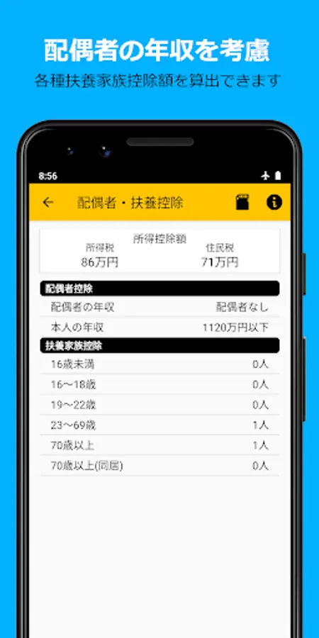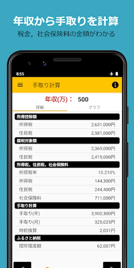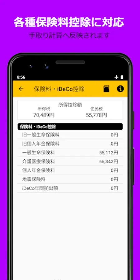In addition, the spouse / dependent deduction can be calculated from the spouse's annual income and family structure, and the insurance premium deduction / iDeCo deduction can be calculated from the insurance premium amount, and the result can be reflected in the take-home calculation.