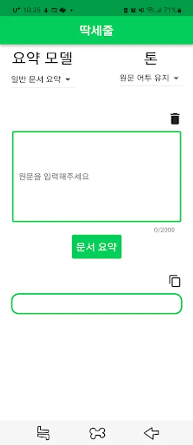 딱세줄 : 한국어 문서 요약 앱 Screenshots