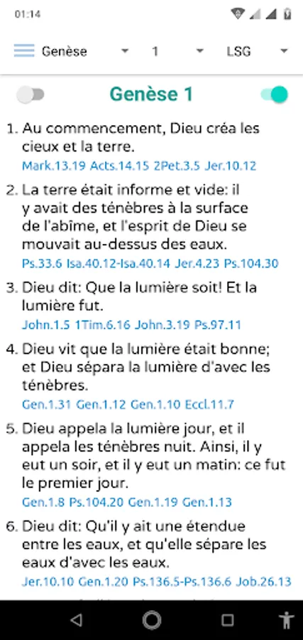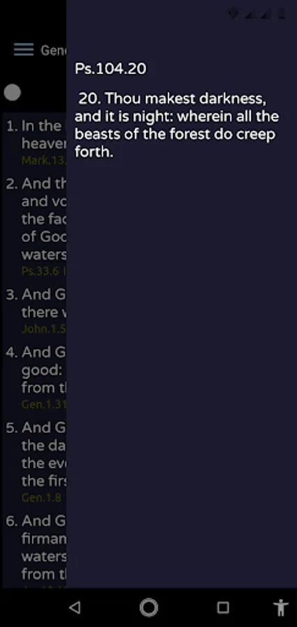Bible Study with Cross-References offers users the ability to navigate to related Bible texts, compare interpretations between two versions of the Bible, use dark mode, and switch between related texts.
