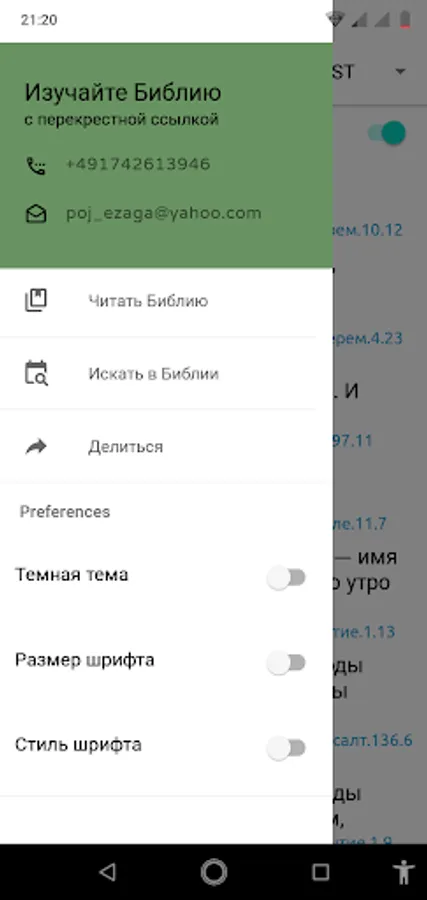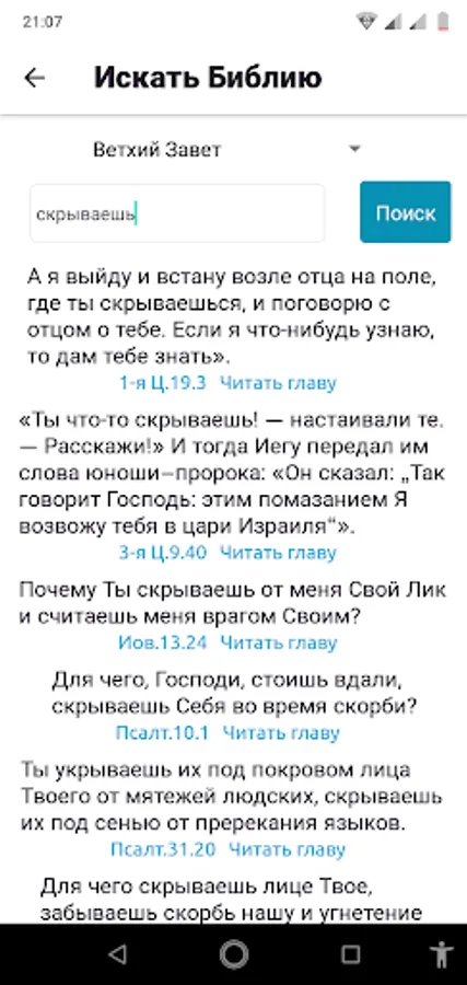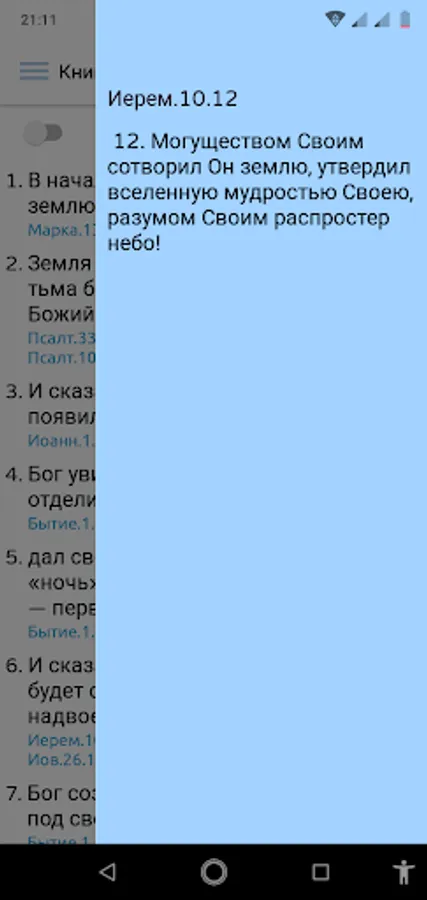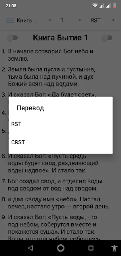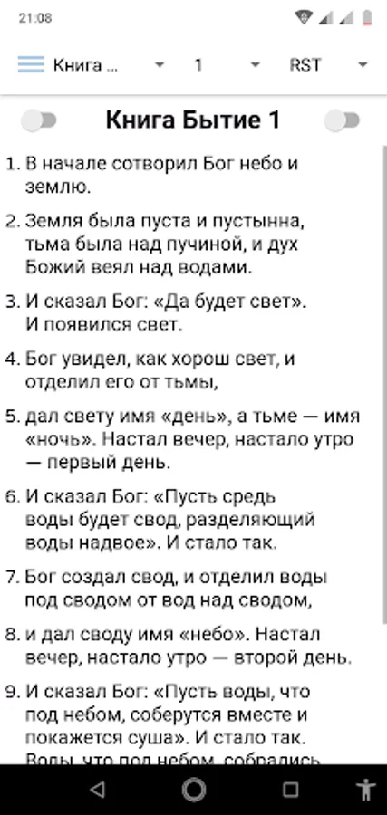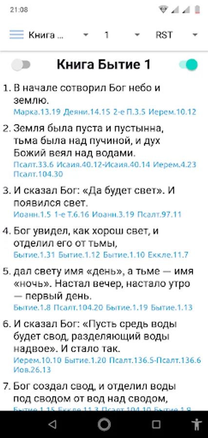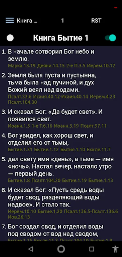 This app offers users the ability to navigate to related Bible texts, compare interpretations between two versions of the Bible, use dark mode, and switch related texts. The currently supported versions of the Bible are: Synoal Translation and Contemporary Russian Translation. Text search is possible as for the Old Testament. Additional settings are available, such as changing the font style and font type, and all features can be used completely offline.