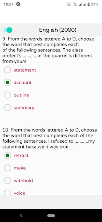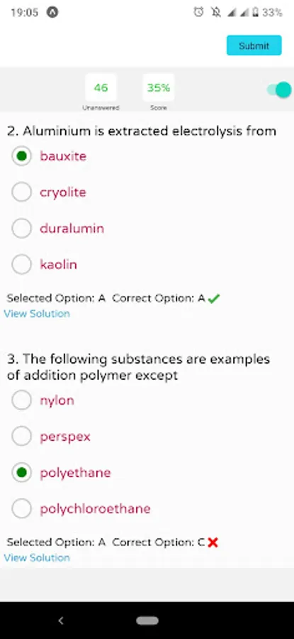 ii. Correct Answers Mode: For fast revision study, the user can select this mode and scan through only correct answers.