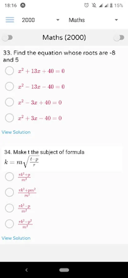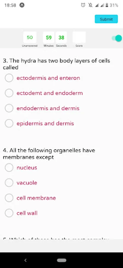 i. Relaxed Mode: This is default mode. The student studies and can answer the questions freely. The app notifies the user when he makes the correct or wrong choice.