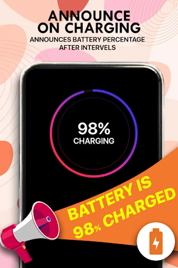 Announcer app has a battery voice alert which gives you battery notification. Battery notifier keeps you informed about the amount of battery left in your cell phone. Battery notifier gives you a reminder of the battery level, so that you can charge your cell phone before it dies.