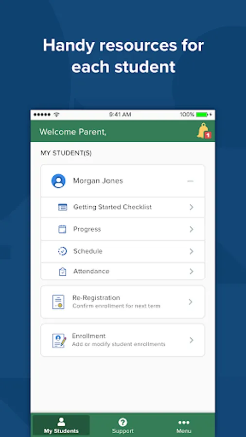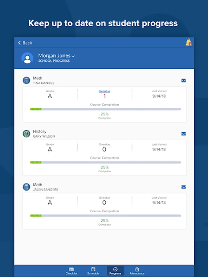 Each step of the way, you’ll receive real-time updates‒such as when your student’s