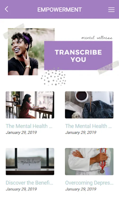 Jasmine Jackson the founder of the app TRANSCRIBE YOU this app allows you to connect with other app users by writing to eachother. TRANSCRIBE YOU gives you information on hotlines and resources for mental health, you will also be able to find therapists in the area. Thank you for downloading TRANSCIBE YOU app ENJOY!