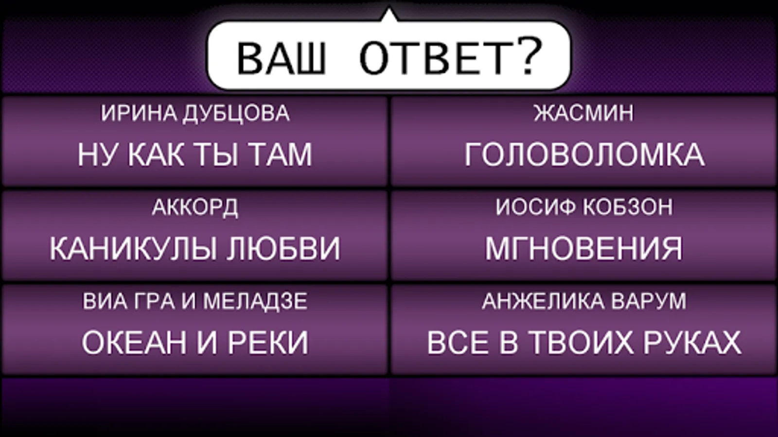 What song is this? Our test will allow you to find answers to such questions. Take on this daring musical challenge and become a music expert by putting your knowledge to the test in this mind game. Guess both Russian hits and foreign songs of various genres, because this is a free music quiz inspired by guess the melody or guess the song completely in Russian.