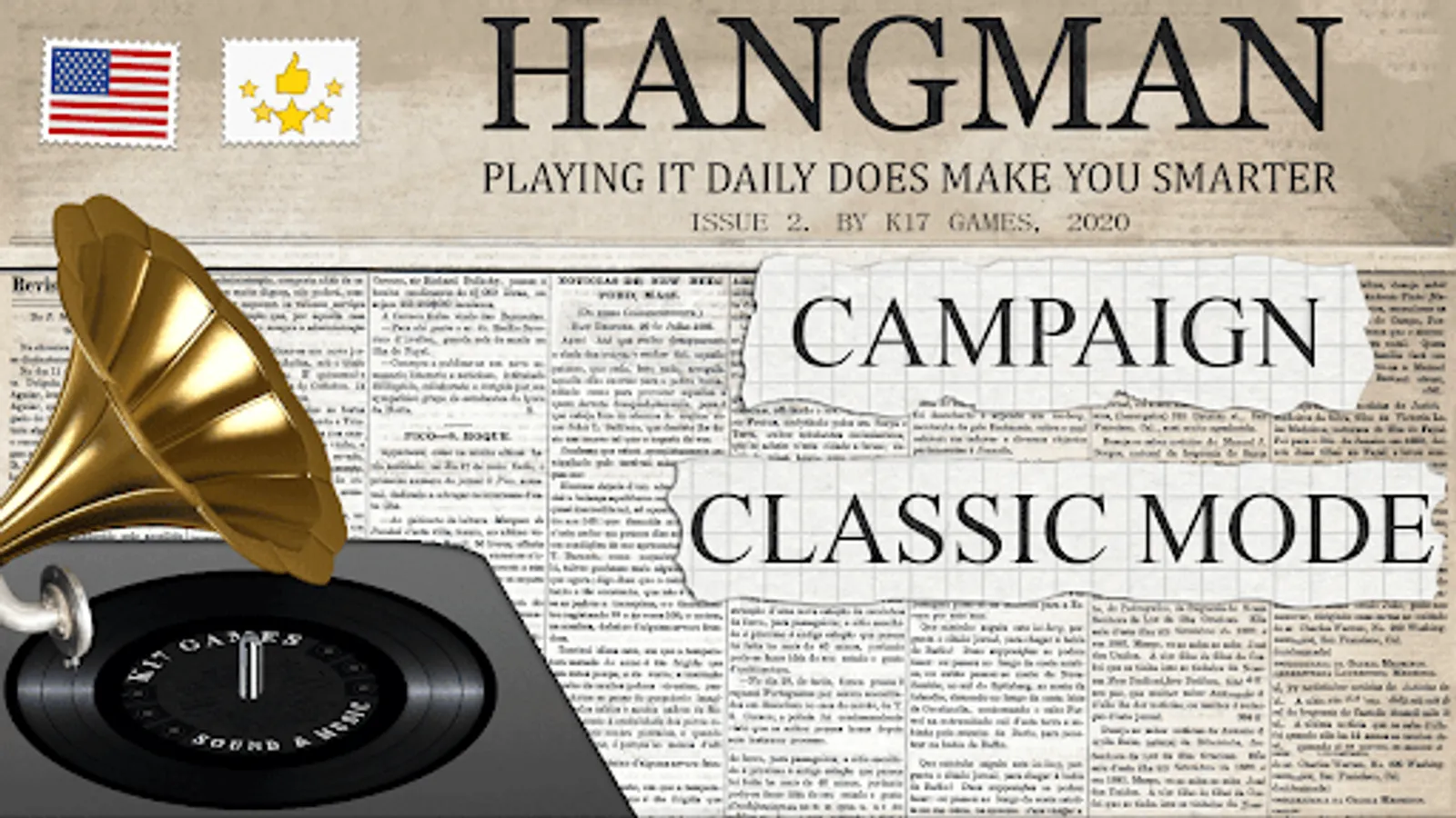 Welcome to the world of Hangman, a classic word guessing game that will surely test your knowledge. Enjoy a truly retro paper and pen experience and a smooth jazz soundtrack to accommodate the journey of endless word puzzle fun. Whether you're looking to beat the campaign mode or just enjoy a casual word-guessing, we’ve got you covered. Choose from a variety of categories and challenge your mind as you search for hidden words and solve puzzles.