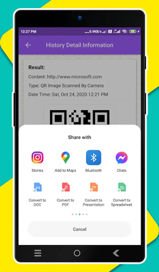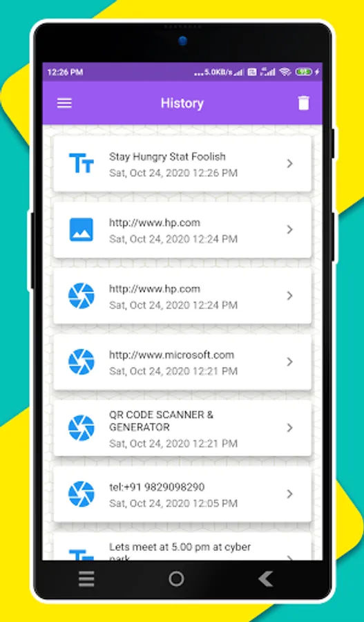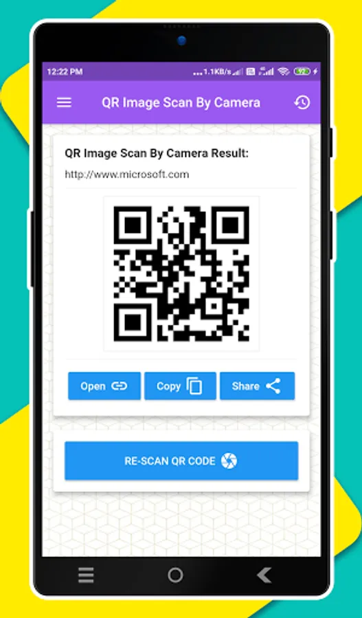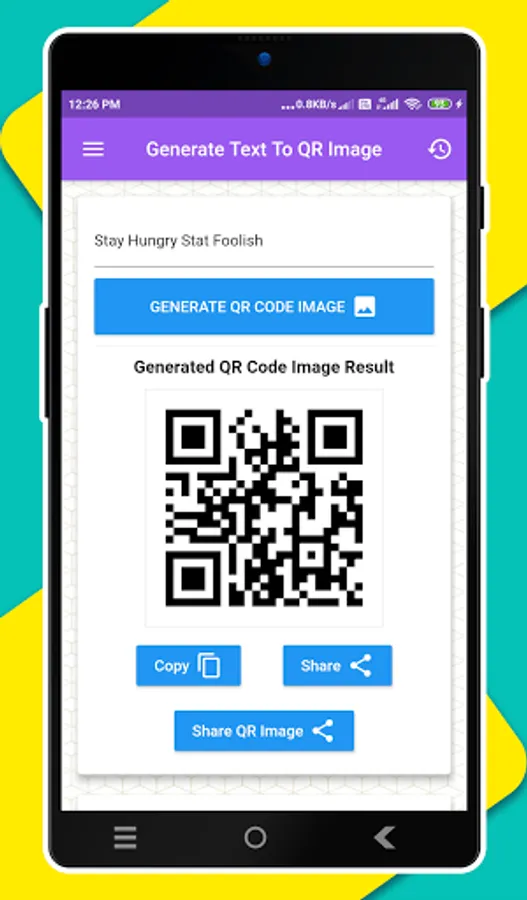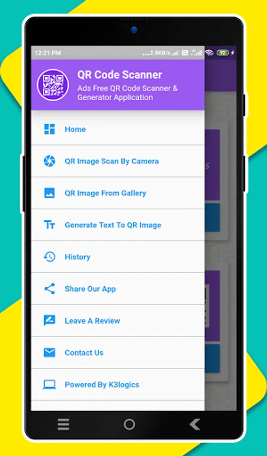 User can scan any QR code image and also can generate QR code image by entering any text, link or message.