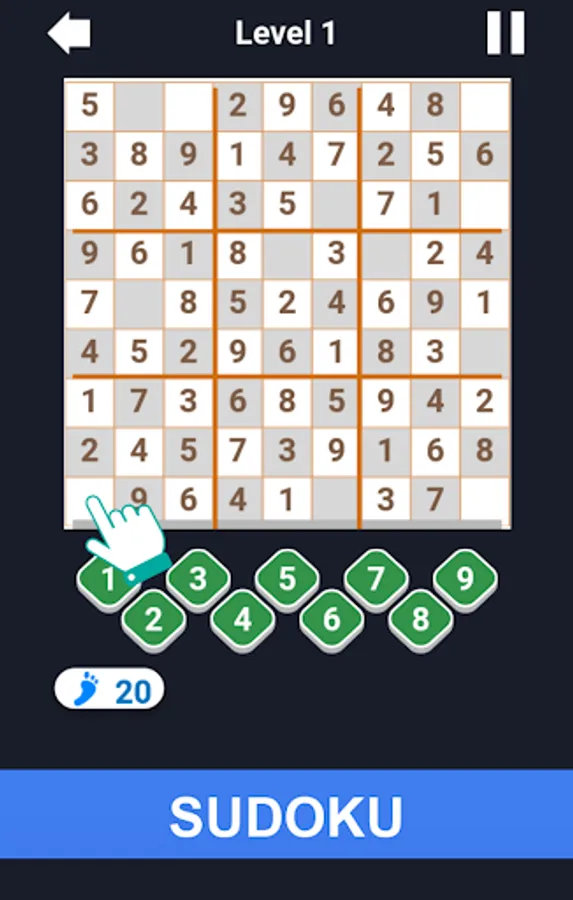 Sudoku: Goal is to place the numbers 1 to 9 in each box so that each number appears only once in each row, each column and each mini grid.