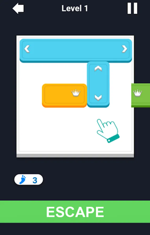 Escape: Slide blocks to unblock the Crown block out of the board. Try your best to solve stages and get 3 stars!