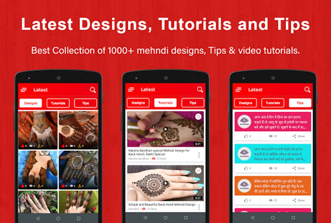 🔅 Share mehndi designs and tutorials with your friends through various social media apps.
