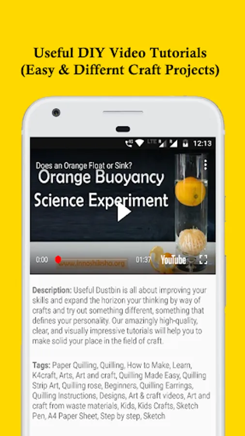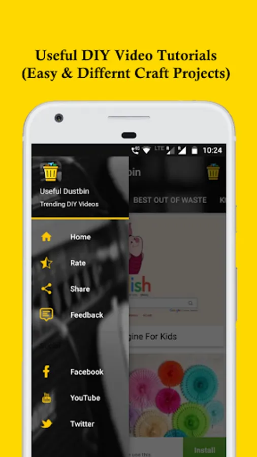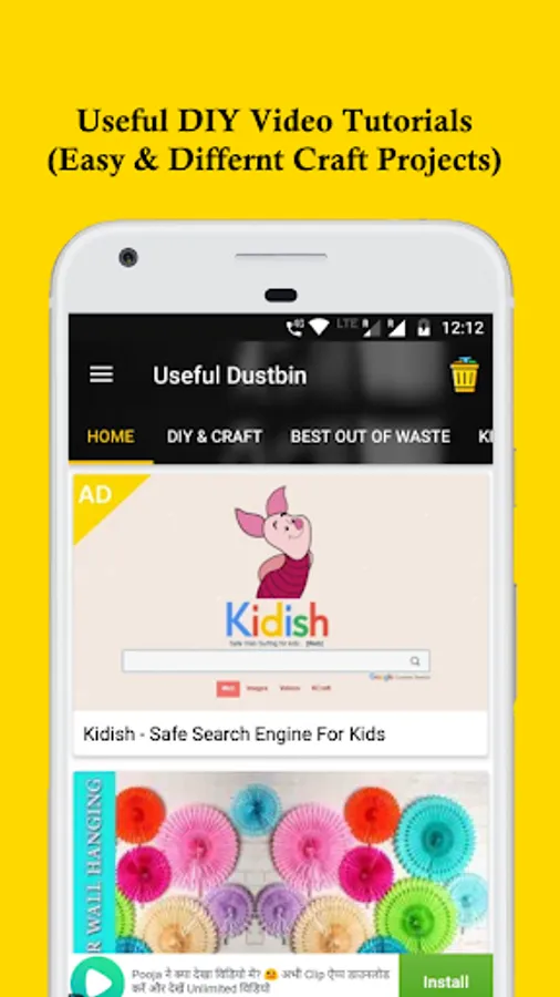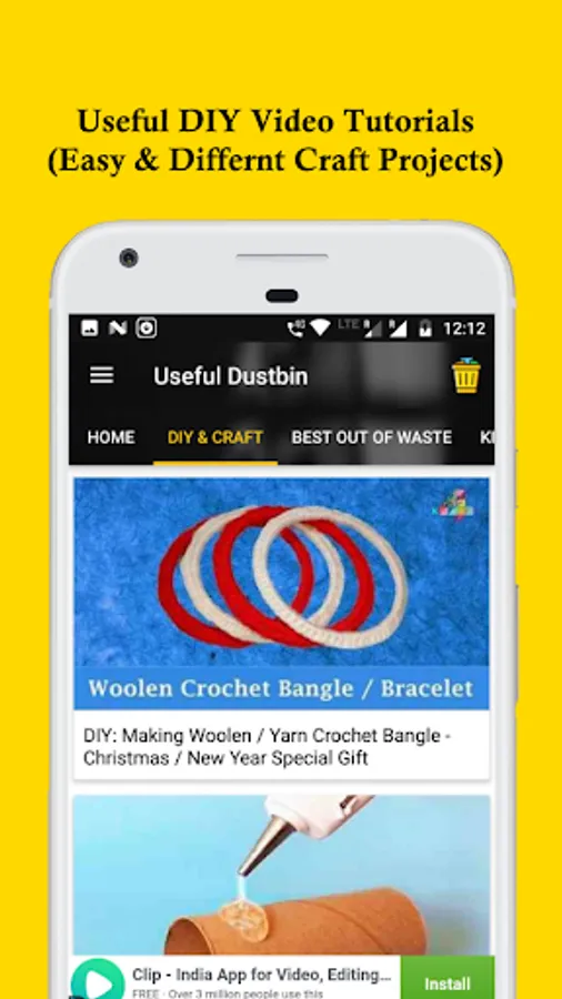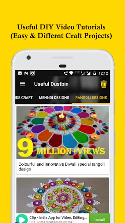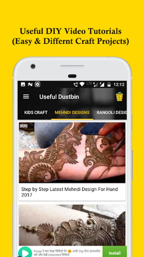 Here we bought a Trending video tutorial application "Useful Dustbin". Most famous ideas from all over. Here lots of DIY, craft, best out of waste, mehndi, rangoli videos from various internet sources. We update many tutorials daily and its will be help to your creative work. Very useful application for craft lover and for your kids.