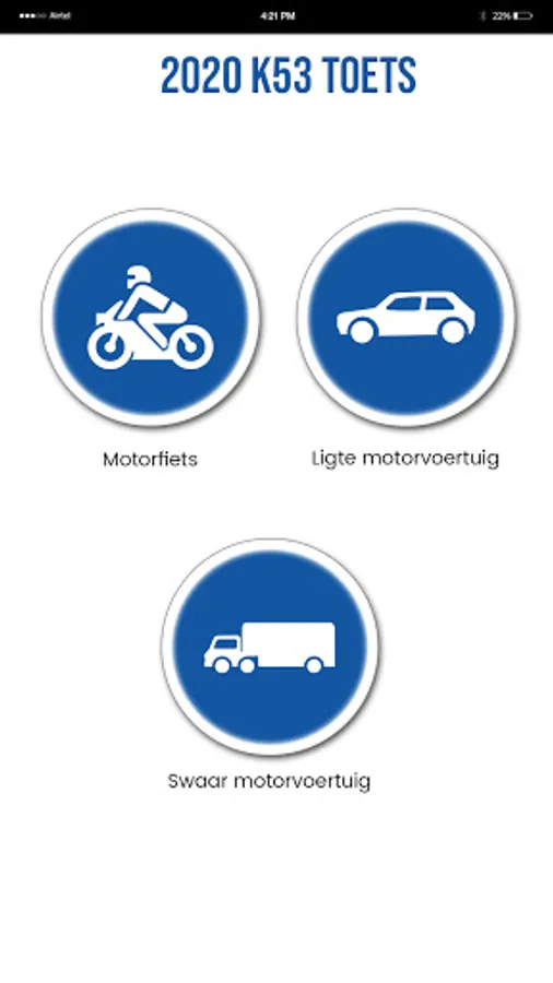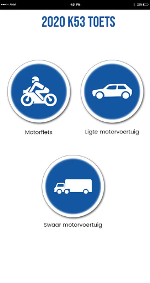 The app tests all the sections, controls, road rules, signs and road markings.