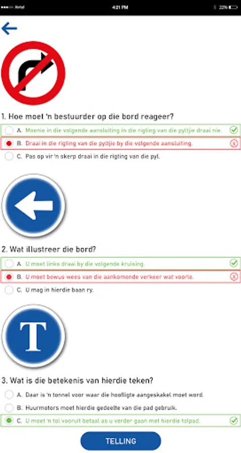 All the photos of the road signs and markings are clearly visible so that the user can see the questions asked.