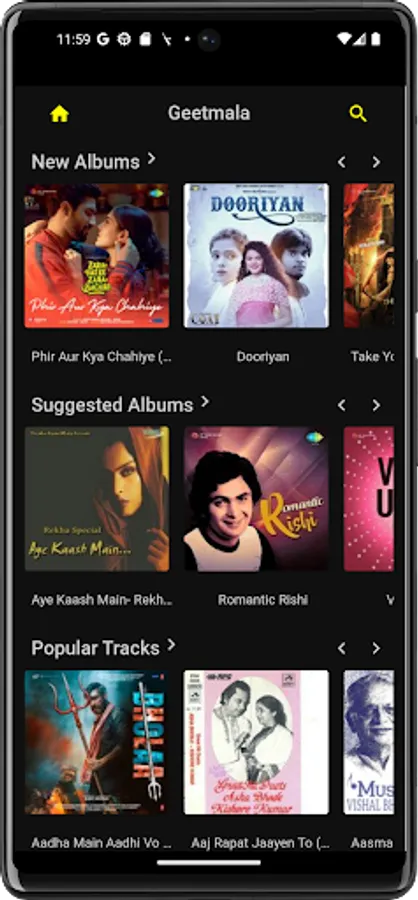 Geetmala is the best way to listen to millions of songs for free. Enjoy the latest songs from a collection of best of Hindi music.