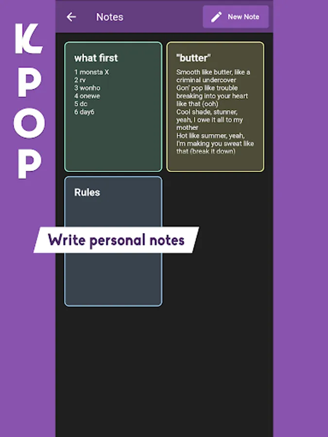 No login or personal information required. An internet connection is only required to update the upcoming comebacks.