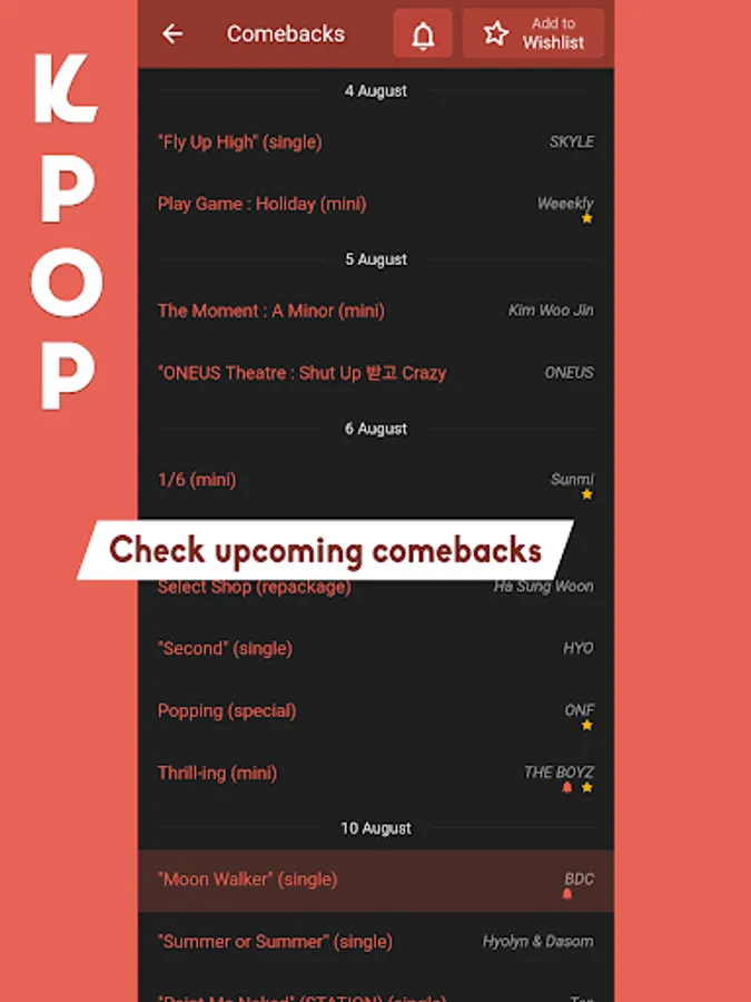 • Keep an eye on upcoming comebacks, set reminders to never miss a release
