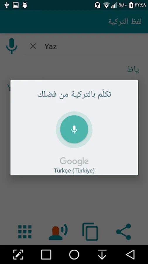 You can speak Turkish so we can write what you say and get the text in Turkish and also in Arabic letters