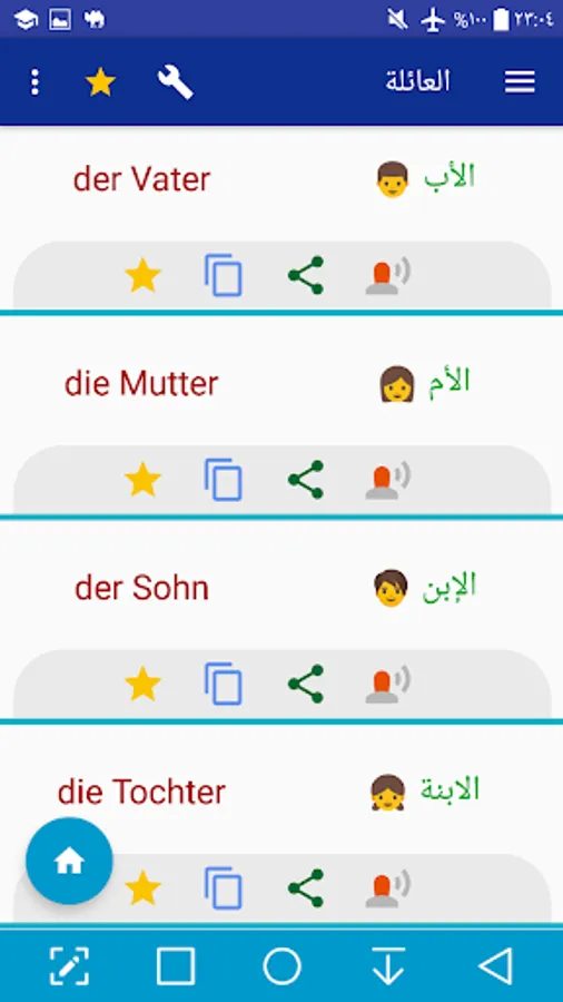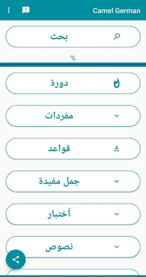 Language learning course, important phrases and phrases in public and social life, important vocabulary with sound with the ability to participate, common words or words similar to the German language, verbs lists classified according to the alphabet includes all verbs German language, translated stories, numbers, arranged numbers, Countermeasures memorize, tests for each lesson, test your progress in language learning, crossword puzzles with Camel, play and learn to read and confirm the word.