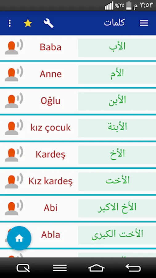 🔴 common words (all words similar in pronunciation and meaning between Arabic and Turkish, which is still used)