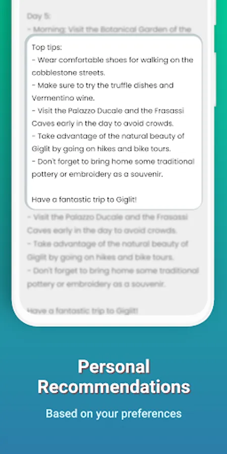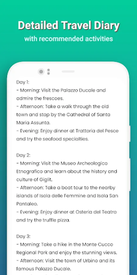 Detailed travel itineraries with recommended activities, restaurants, and accommodations
