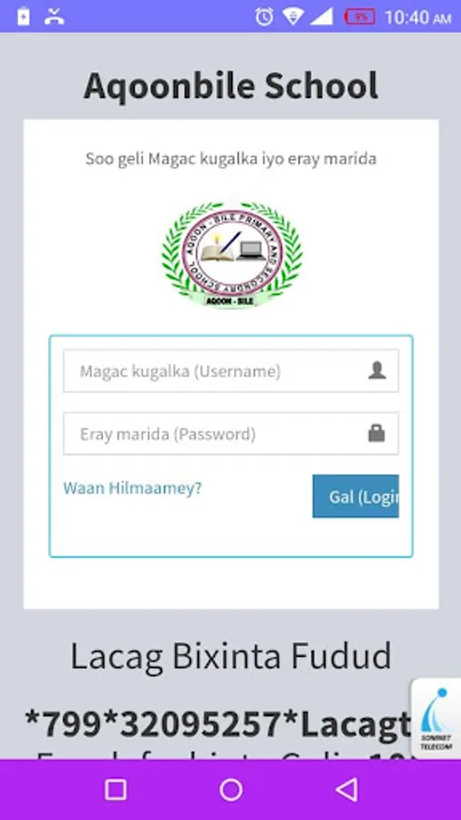Aqoonbile app wa application ay isticmaali karan ardada iyo waalidiinta ay caruurtooda dhigtaan schoolka aqoonbile, waxaa ayna kala socon karan natiijooyinka imtixaanada ubadkooda, iyo wiliba howlaha dhaqdhaqa schoolka.