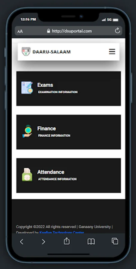Daaru Salaam University App waa app loogu talagalay ardayda dhigata jaamacada si ay ugala socdaan natiijada imtixaanaadka iyo xaadirinta iyo wixi la mid ah
