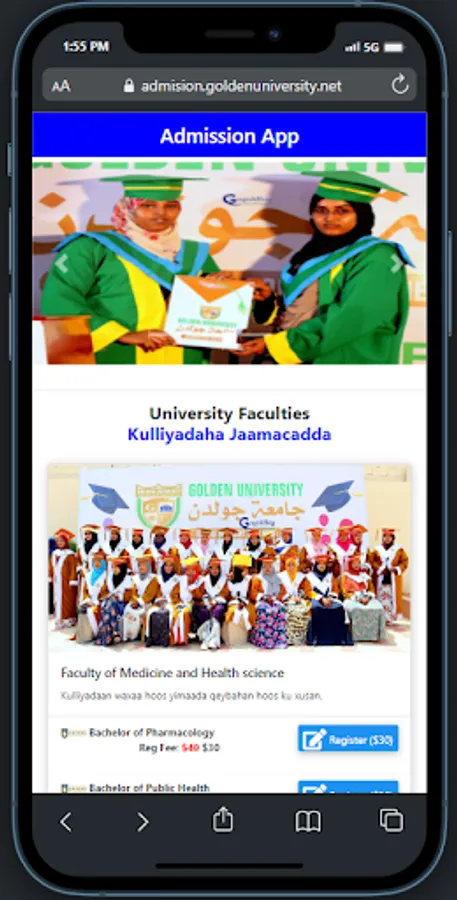 Golden University Admission App waa application online ah aad ku sameyn karto admission