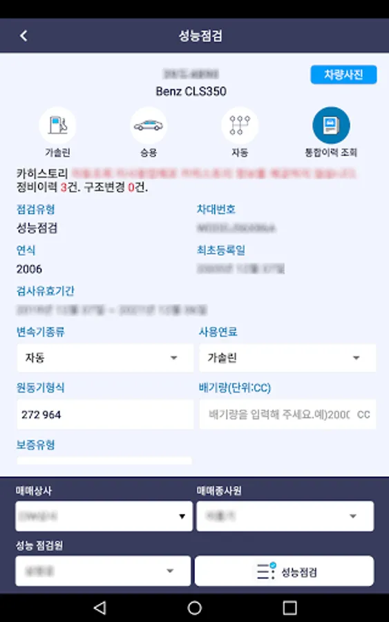 By entering the vehicle number, the vehicle information, tuning, special history, usage change, recall history, etc. are automatically searched and registered, allowing users to conveniently use it.