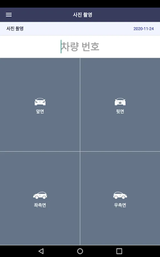 Take a picture of the front, rear, left or right side of the vehicle, or upload a picture stored in the mobile gallery and press the save button.