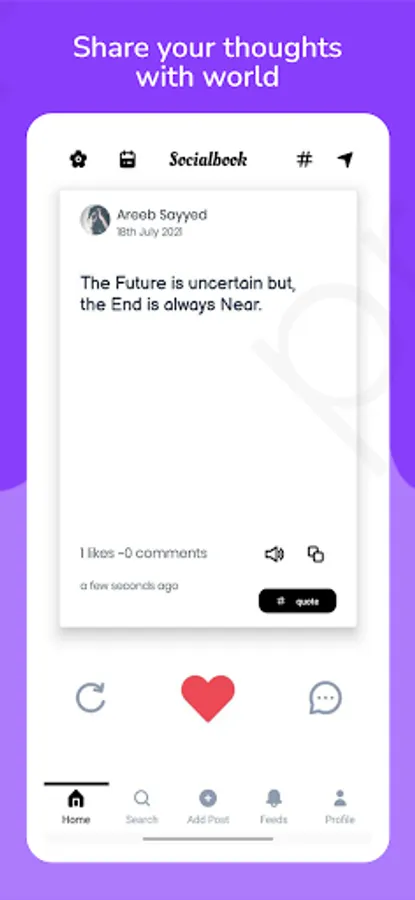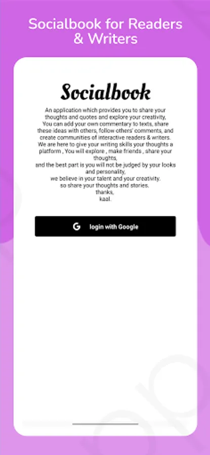 We have developed this application and which is a platform for readers and writers from all over the world . Here you can share your thoughts , quotes and creative ideas , you can make friends here ,follow other personalities, like , comment , save and copy posts, the app can be customised through multiple themes , you will receive notifications of new activities related to your account . So here we need your support , we want sponsorship for our application - Social Book, our sponsors will be given credits via advertisements in our application , If you are interested ping me.