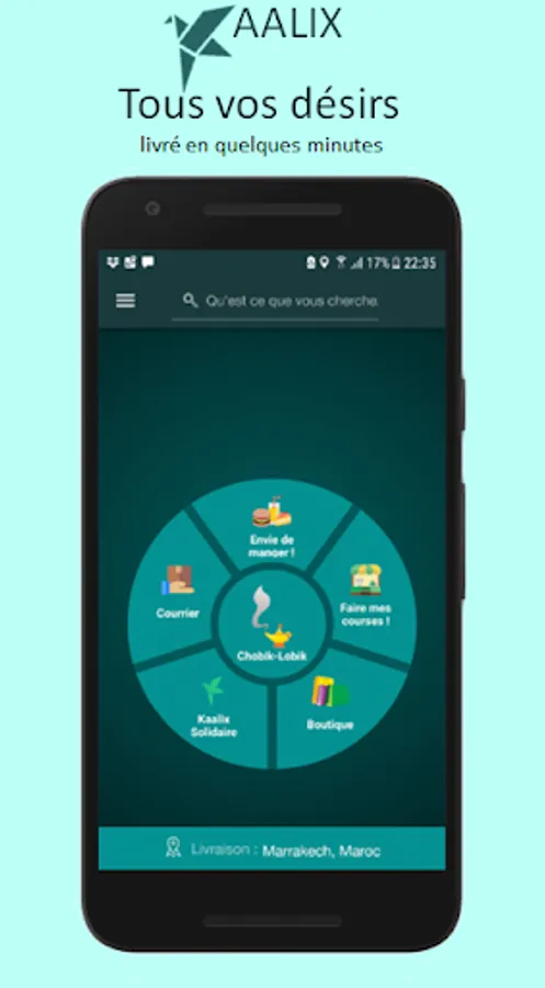Kaalix is an express delivery application that allows the delivery of ALL products. For example, we deliver meals from ALL restaurants, we do the shopping for you, we deliver the products of ALL shops , we also help you with other tasks. Such as: Find your keys and documents, get your gym bag, and much more.