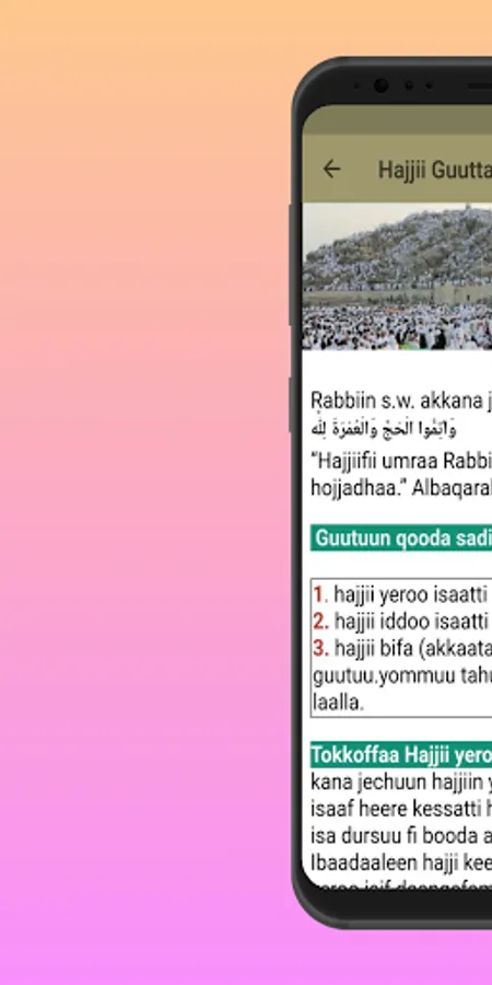 Application kaayyoo hajjii jedhamu kuni irra filatamaa waayee hikmaa hajjii keessatti qopheeffame keessa isa tokko. Rabbiin kan qopheesseefii kan hiike isaan lameenuu irraa haa jaalatu, jannataanis galata haa galchuuf. Akkasumas gulaallee maxxansaafii karaa interneetiinis raabsinee akka ummata keenya bira gayu goonee jirra. Rabbiin nurraa haa qeebaluu. Ummata keenyaa hundaan keessaattu dargaggootaafii barattootaan barumsa Kaayyoo Hajjii kana akka dubbistanii irraa barattan isinii dhaamsa dabarsina. Jaarraan jirru jaarraa beekkomsaa, saayinsiifii teeknoloojii waan taheef barnoota islaamaarratti akka jjajjabaattan isiniin jenna.