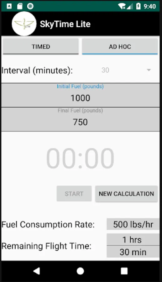 user, and the user can start the Timer once the Initial Fuel Value is entered. When the