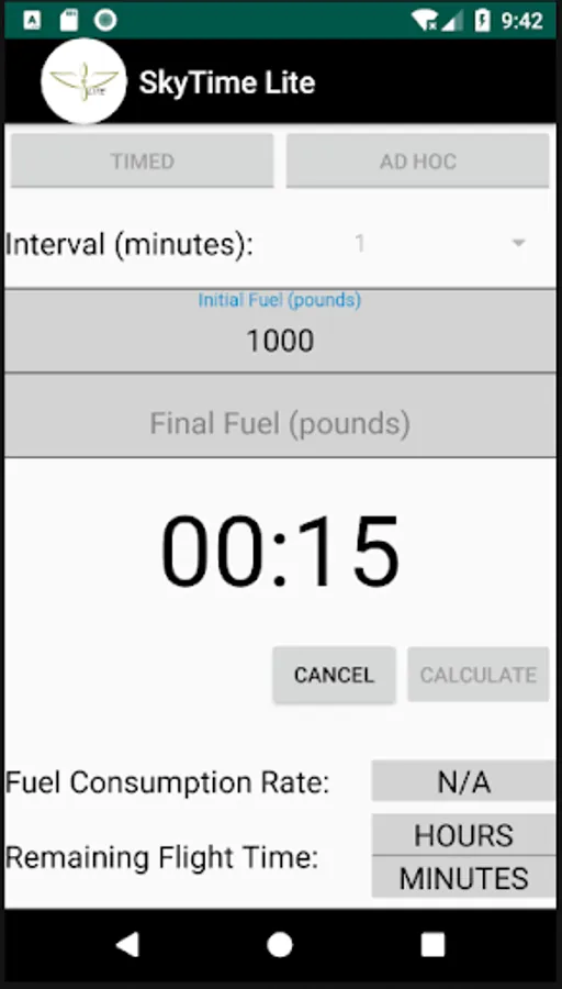 time is up, the user will be able to enter the Final Fuel Value and calculate