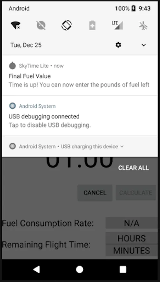 Calculate the Flight Time and Fuel Consumption Rate by entering initial and final fuel values. There are two options to calculate: