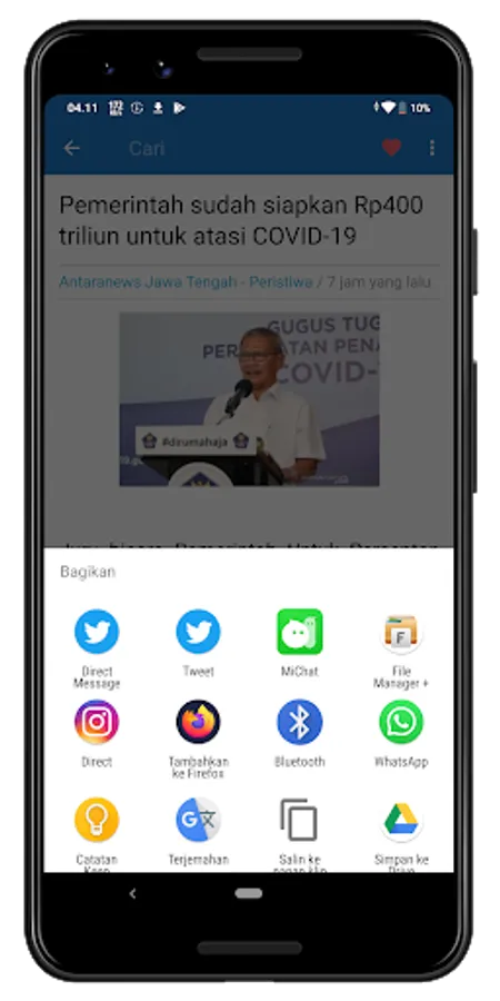 This application also displays news based on news categories. Besides that, it also has a favorite news storage feature for readers to save the desired news or can also share news that is read to others either through email or social media that they have.