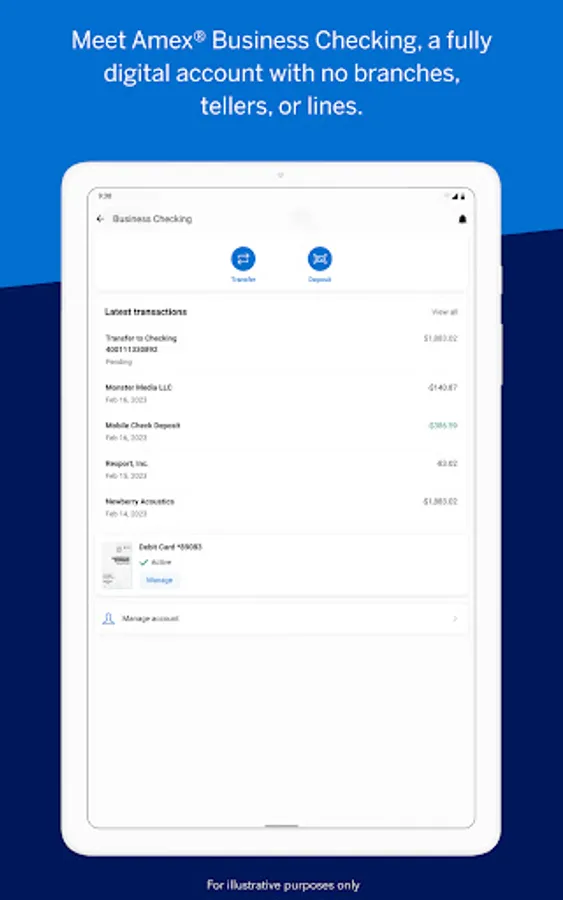 1. With Amex Business Blueprint™, customers can view their select business products that automatically appear on their dashboards at login. These products include Amex® Business Line of Credit, Amex® Business Checking, Amex® Payment Accept, and American Express® Business Credit Cards. Customers may also view the eligible external business bank accounts they choose to link to Business Blueprint.