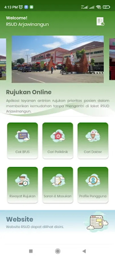 The Referral Information System & Online Registration of RSUD Arjawinangun (SIRUDAL) is a patient priority referral queue service application in providing convenience without queuing at the Arjawinangun Hospital counter. Patients can register and get referral queue tickets online which are then submitted at the queue counter at Arjawinangun Hospital. This application is based on Android, and there are several features including: