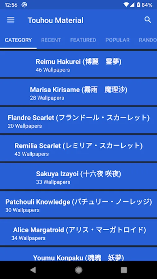 * Recent, Popular, Featured and Random Touhou Wallpapers
