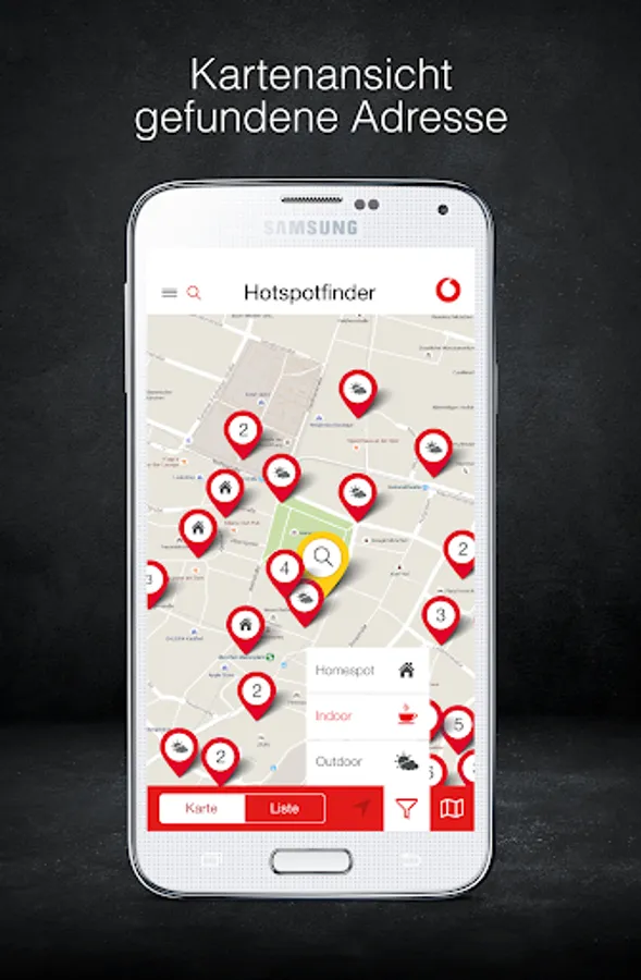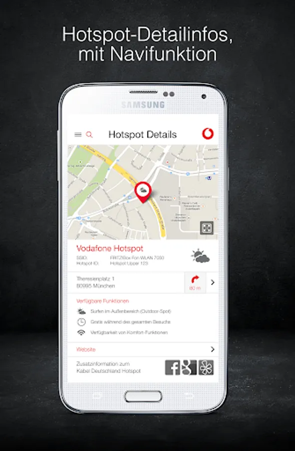 With the free Vodafone Hotspotfinder App you can easily and conveniently find all Vodafone WiFi hotspots in Germany. In addition, the completely redesigned version of the Vodafone Hotspotfinder App offers you many helpful additional functions: