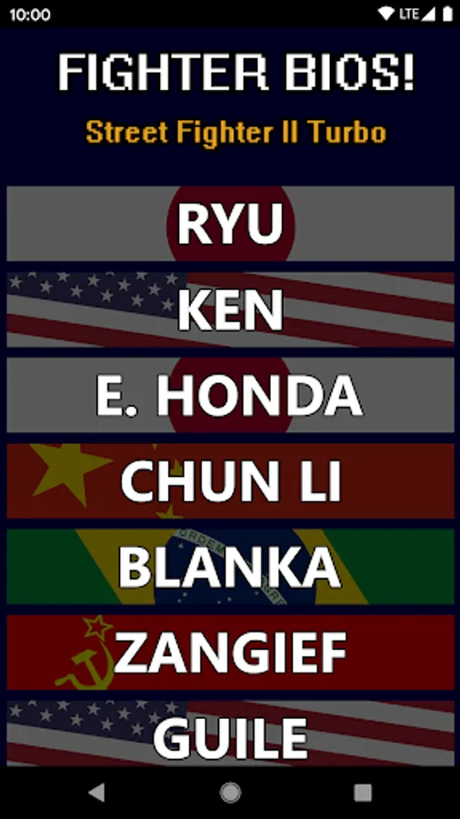 This is a companion application for the classic arcade fighting game 'Street Fighter 2 Turbo'. Every fighter is present, along with all of their moves and how to execute them.