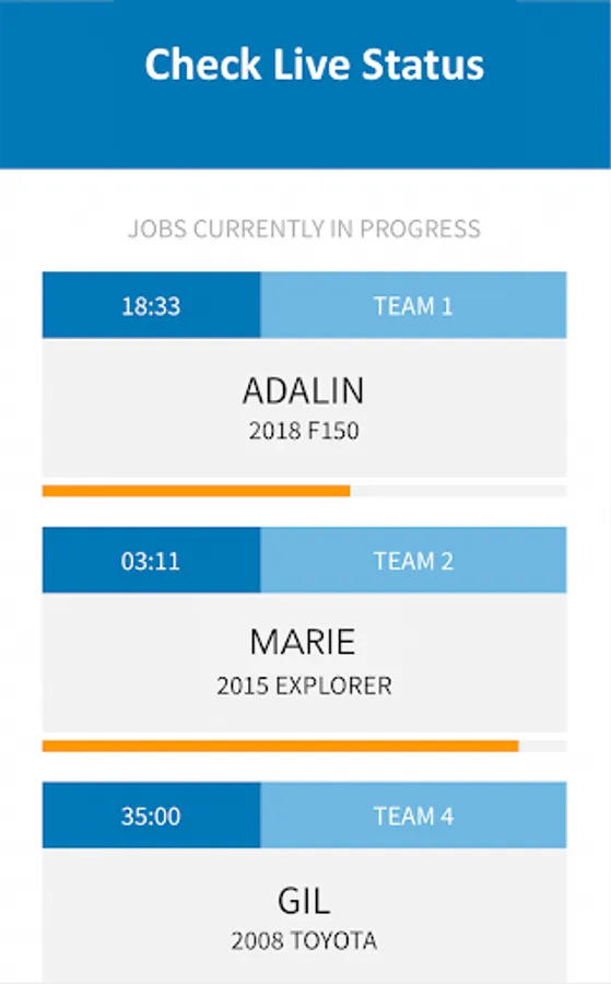 WorksTiming answers the most commonly asked question by customers when bringing their car in for scheduled maintenance, "How long is it going to take?". The Next Available Start Time and Live Job Status is displayed on every job via the app and at the shop. We inform customers and let them see where their car is at every step in the service process.