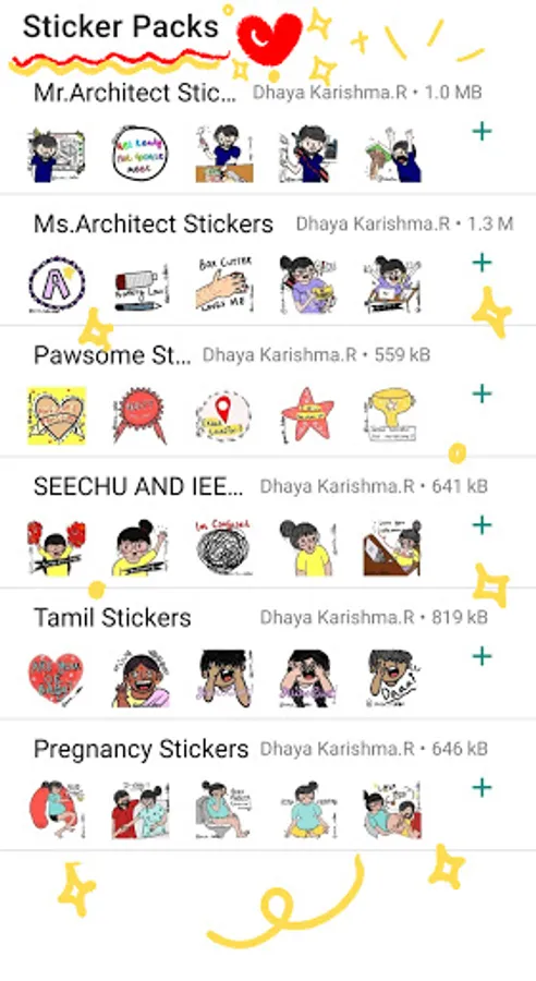 There are more than 100 stickers and super cute sticker packs that includes free stickers.