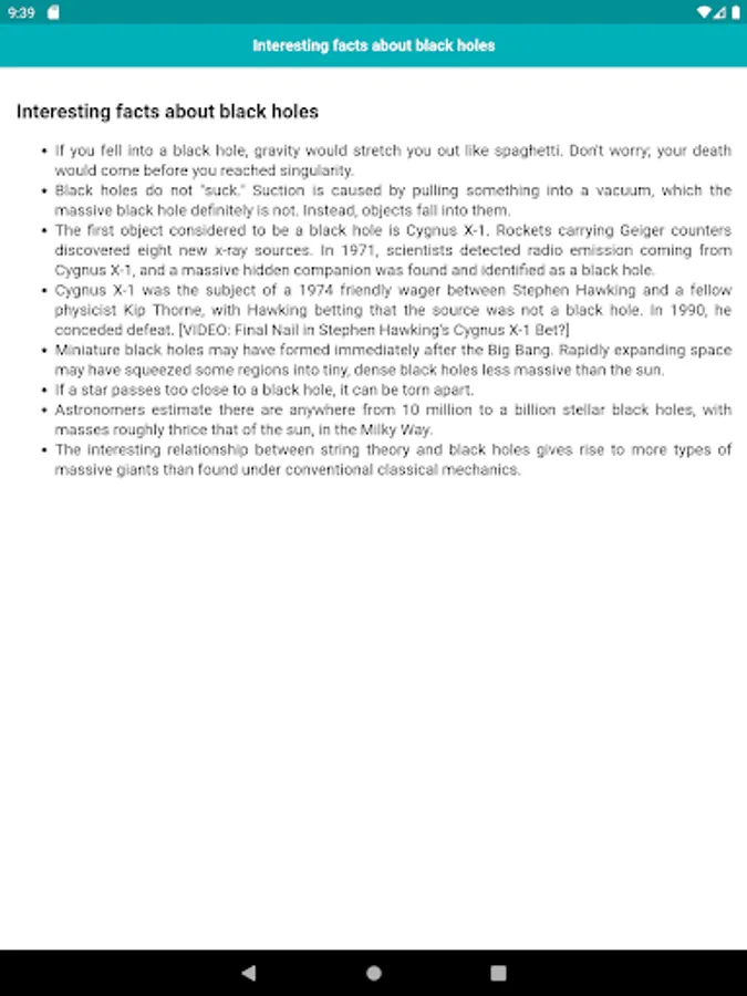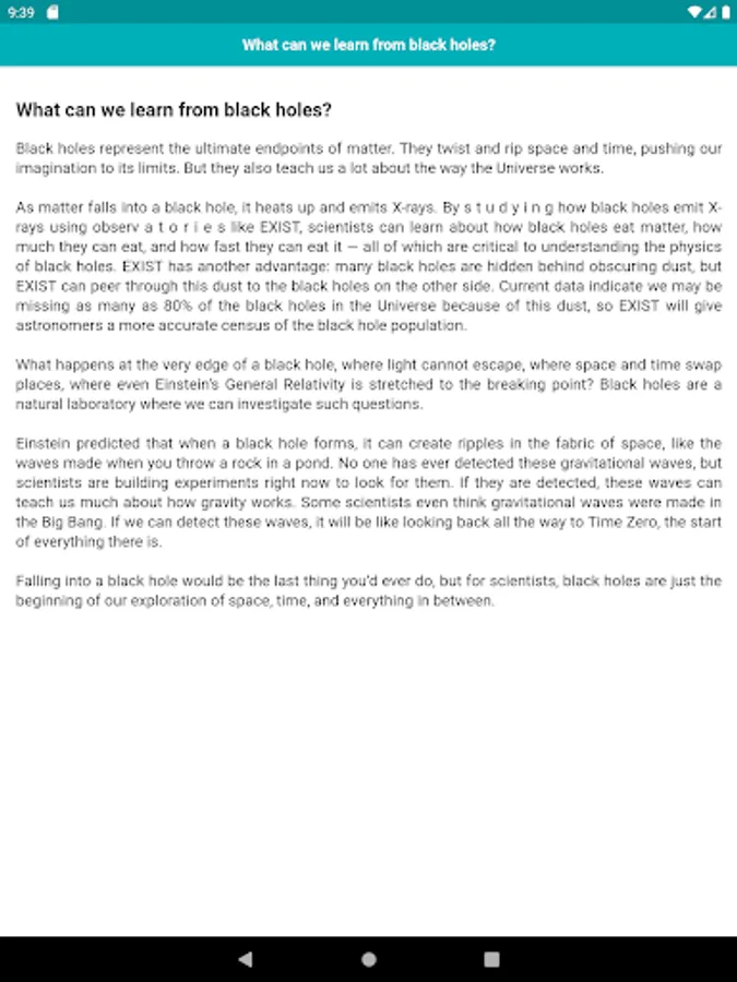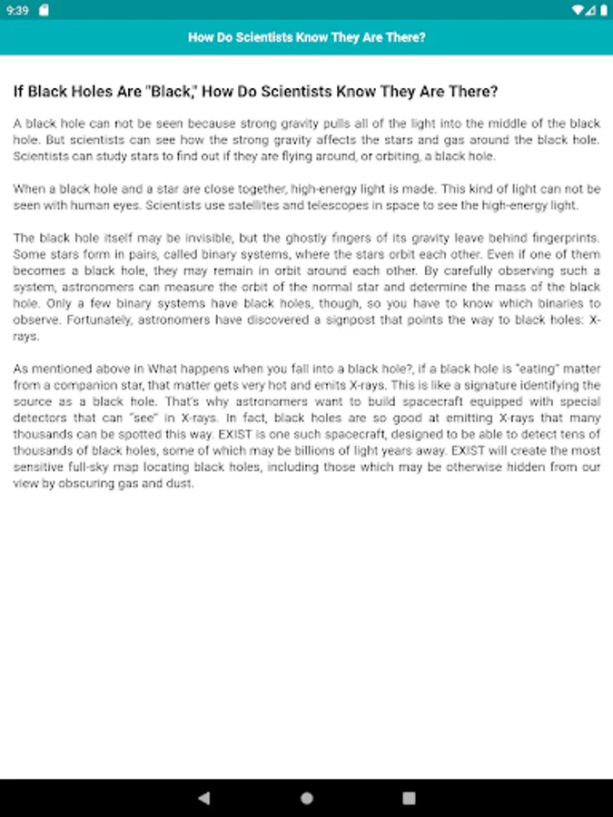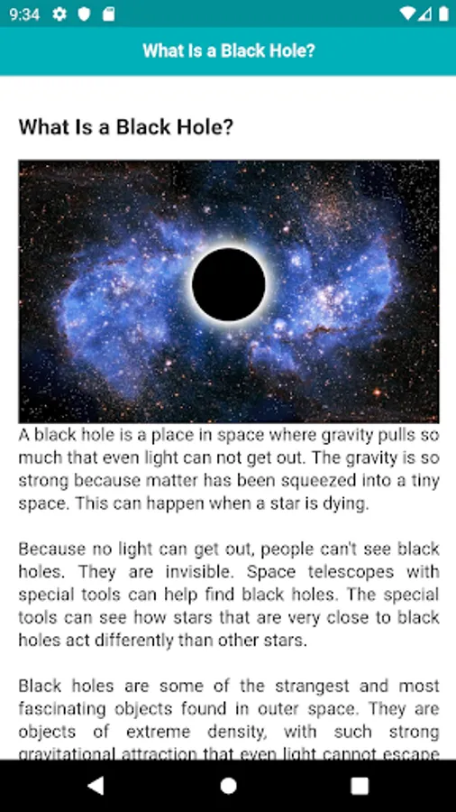 Black hole is an object that is so dense that not even light can escape its surface. From this app, you will get introductory idea bout Black hole. Content of this app: